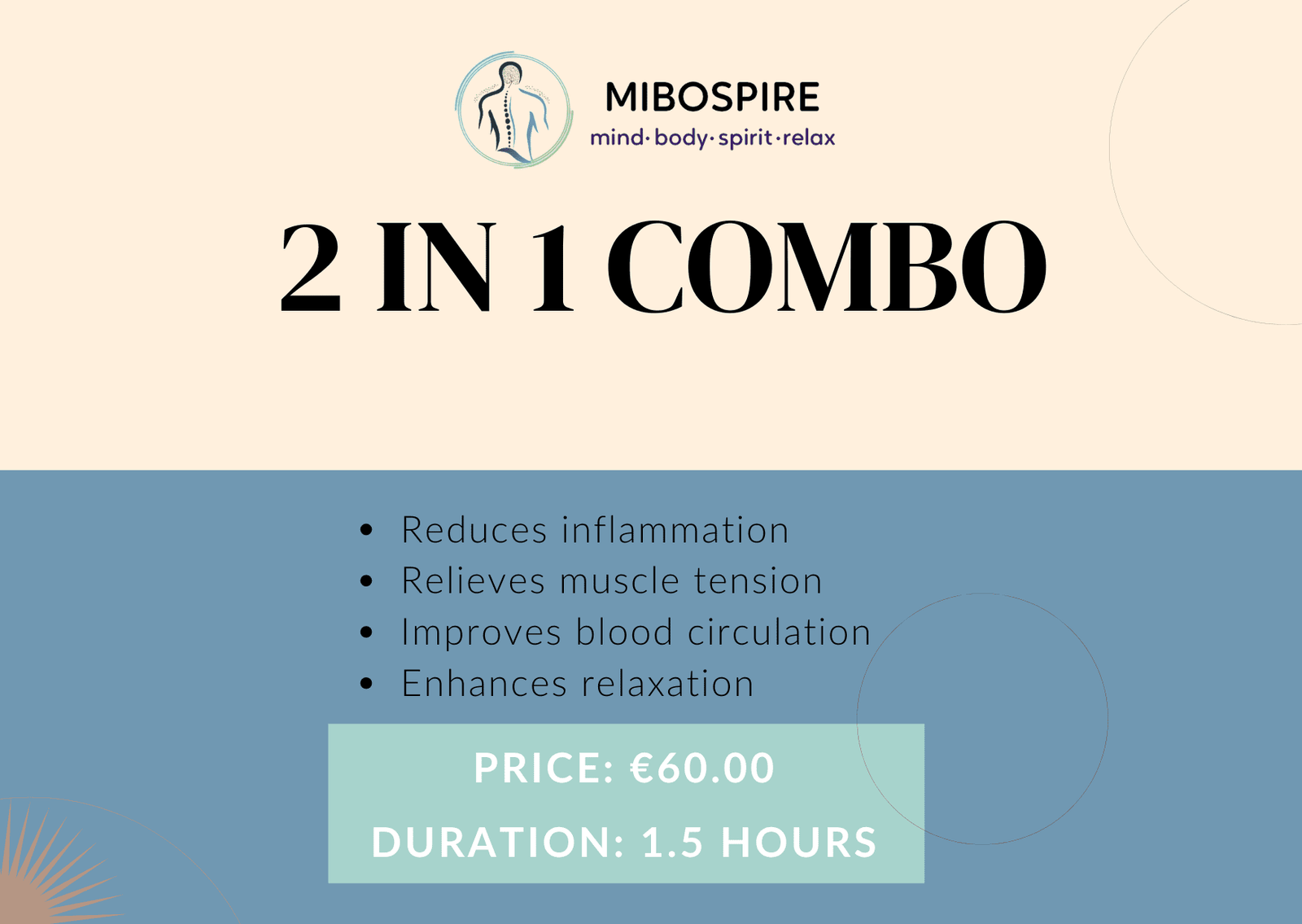 A specialized 1.5 hour session combining tension release therapy and Gua Sha massage to reduce inflammation, alleviate pain, and improve circulation, perfect for targeted muscle relief.